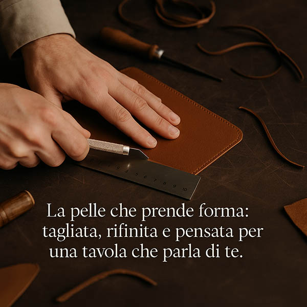 La pelle che prende forma: tagliata, rifinita e pensata per una tavola che parla di te.”